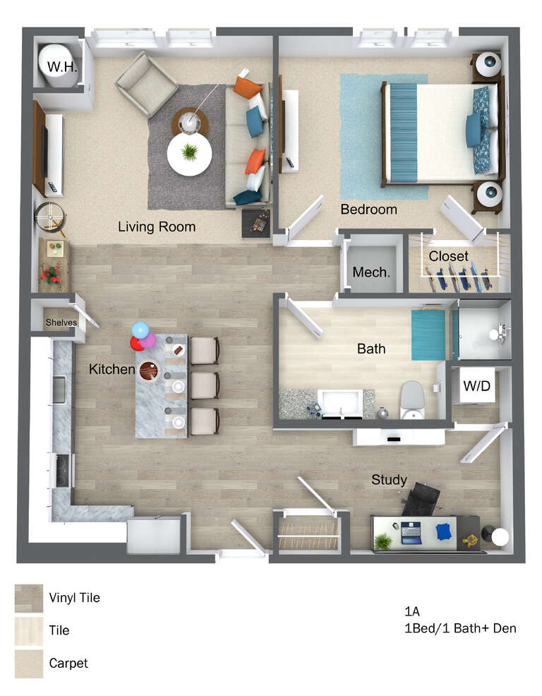 1 bathView PricingOne bedroom homes feature an open-concept living space with a separate bedroom sanctuary, an open kitchen, and in-home laundry.